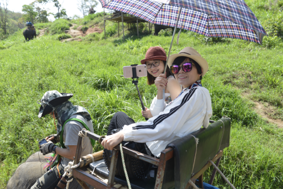 來到清邁,騎大象來趟叢林探險是絕對不能缺少的重頭戲,一般兩人共乘一只大象,并有專業(yè)象師隨行。大象上坡和下坡的時候,走的都是淤泥路,所以大家緊緊地抓住扶手,時時擔(dān)心自己會掉下來。象隊中,有只叫王寶強(qiáng)的大象很狡猾,有只叫Lady Gaga的大象走得慢悠悠地,還有只大象不愛跟隊伍走,專愛挑別人不走的有難度的路,讓坐在上面的人備感驚險刺激。 在大象訓(xùn)練營,大家觀看大象表演。在訓(xùn)象師的指揮下,大象除了會跳舞、踢足球、騎車、站立、鞠躬、戴摘帽子,還會自由隨性揮表演獨特的繪畫天份,精彩的表演讓在場的觀眾掌聲不斷、笑聲不斷。而后大家前往乘坐竹筏,一路上觀賞寧靜的山谷河川及周圍森林美景,河水不深,時而濺起水花,撐來漂去,好不悠閑。