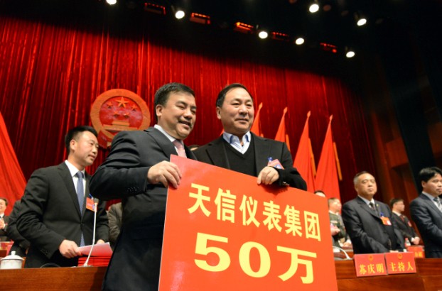 五水共治,各企業(yè)家勇?lián)蓬^兵。公司總裁范叔沙作為縣人大代表和民營企業(yè)家代表公司現(xiàn)場捐贈50萬元,為建設(shè)山青水秀家鄉(xiāng)貢獻了一份力量。